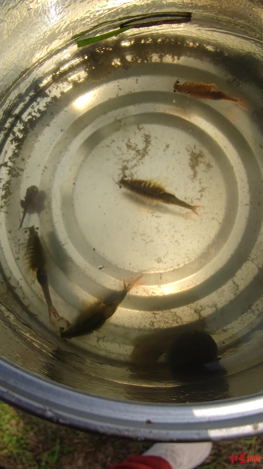 沈小皓是盐道街小学通桂校区四年级学生,他自幼喜欢和自然亲近,父母时常带他到公园、野外玩耍。沈小皓告诉记者,他捞这种“小鱼”是因为觉得它特别漂亮。“在草坪的小水坑里面,特别多这种小鱼,它非常漂亮,腹部有须须,头也很奇怪,没有脑壳,直接是两只眼睛,尾巴是红色的,游来游去非常漂亮。”
